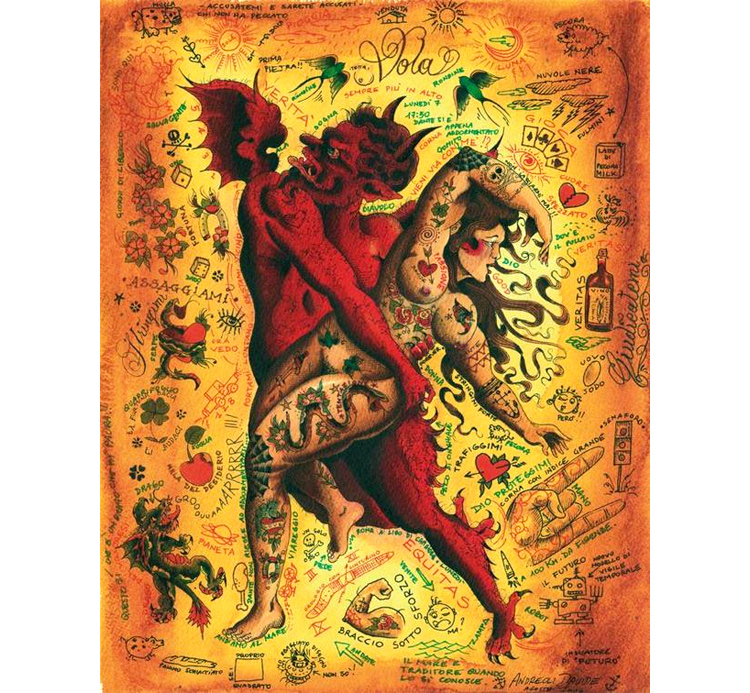 Davide Andreoli is a Milan based tattooer with some wicked illustrations of chickens, muscle men and damsels in distress.