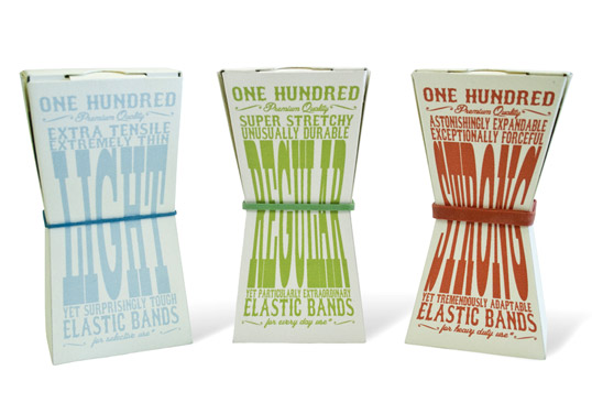 A lovely project by student Ric Bixter, the brief was to go into the pound shop an pick something uninspiring out and re think the design of it. I can't think of many things less inspiring than rubber bands, and yet Ric has managed to perfectly convey the function of the rubber band with his design as well as incorporate witty copy. Well done Ric, keep up the good work!